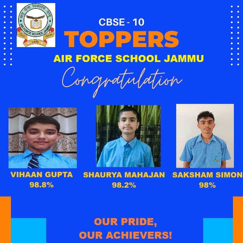 Air Force School Jammu strives for developing Physical, social, moral, intellectual and emotional development of the students and also it provides opportunities to develop creativity among students, encourage the students to work in groups and develop confidence, create awareness among the students to protect national and public property, to develop qualities of good citizenship among students, to develop scientific aptitude and attitude and to help in the progress of society and nation. The task of the Air Force School is to enable students to be people –centric and be responsible citizens of the world and to play their unique role in the betterment of society and mankind.