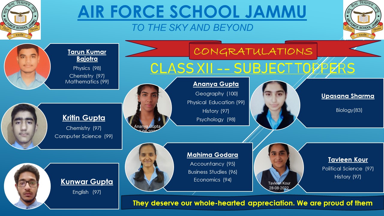 Air Force School Jammu bagged 1st position in Chess (Girls),2nd Position in Chess (Boys),Table Tennis 1st Position in(Boys & Girls) and 2nd position badminton(Boys)